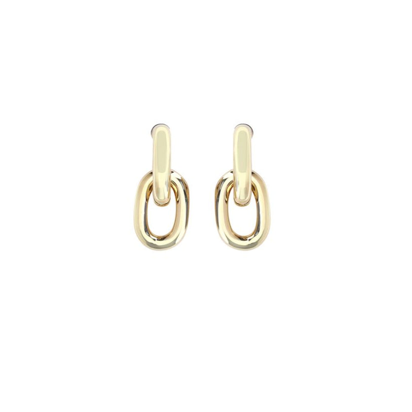 Rabanne’s oversized double links catch the Saint-Tropez light like jewelry made for yacht decks and late lunches. Cast in a polished gold-tone with beveled edges, these earrings deliver a clean, modern silhouette that reads luxe without trying. Lightweight enough for day, gleaming enough for night.